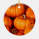 Photo of a big bunch of orange brightly coloured pumpkins.