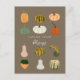 This pumpkin design features 12 different types of pumpkin varieties illustration with medium bronze background.