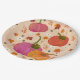 Pumpkins Fall Leaves Pattern Paper Plates. Original watercolor art.