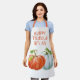 Pumpkins Happy Thanbksgiving burnt orange fall all-over print apron. It features burnt orange and white pumpkins with green leaves and your text.