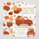 Get ready for fall fun with this adorable Pumpkins Leaves and Stacks of Hay Birthday Invitation. Featuring a bright red truck overflowing with pumpkins, surrounded by colourful autumn leaves and rustic stacks of hay. This design perfectly captures the cosy charm of a fall birthday celebration. With festive layout, it’s ideal for a boy’s pumpkin-themed party, a backyard bash, or any autumn birthday event. BRT149