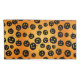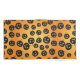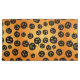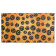 Seamless pattern design with Halloween pumpkins silhouettes on orange background.