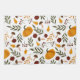 A folk-art inspired pattern of two-tone pumpkins, pomegranates, pears, mushrooms, leaves and red berries.
