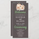 Turning to the back of the program, you'll discover a thoughtfully curated list of the wedding party presented in classic black and grey. The predominantly simple block font ensures clarity and sophistication, while the words "Welcome," "Ceremony," and "Wedding Party" take centre stage in a pretty decorative script font. These scripted elements add a touch of romance and personalisation to the design, making your program a cherished keepsake for both you and your guests.