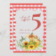 Celebrate your fall wedding in charming rustic style with this autumn-themed table number card. Featuring watercolor pumpkins, sunflowers, and a cosy red gingham border, this card blends country charm with seasonal elegance. Personalise with your names and wedding date for a beautifully coordinated reception table setting. Perfect for barn weddings, harvest celebrations, and Thanksgiving weddings.
