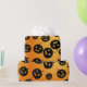 Seamless pattern design with Halloween pumpkins silhouettes on orange background.