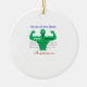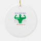 The ornament is a thick ceramic that is not too heavy to hang on an artificial tree. It is the perfect size for an ornament and the colors are really vibrant. The word I wanted on it is very clear and easy to read. I chose white for the word against the black background and it shows up really well.