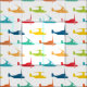 Ideal for baby boy gifts and blankets, this pattern features bold classic colours like red, blue, green, yellow and orange Osprey military aircraft in a side view with its tilt rotors in three different positions on a white background.