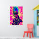 Portrait of a blue hair punk cyberpunk lady on a funky coloured background. This is a AI generated art.