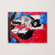 Punk rock star collage with pink, black and blue jigsaw puzzle