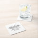 These minimalist paper coasters with punk rock vibes are perfect for anyone who prefers weddings without a lot of flowers and fancy stuff. They have a simple black and white colour scheme with tattooed fingers at the top spelling out "TRUE LOVE" and the couple's names and wedding date below in a typewriter style font.