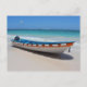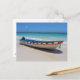 A picture postcard of a colourful boat washed up on the Punta Cana beach located in the Dominican Republic.
