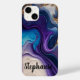 Purple Marble Rose Gold Name Script Case-Mate for Apple iPhone: A stunning combination of style and protection. This exquisite case showcases a purple marble design with elegant rose gold accents and a personalised name script. Elevate the look of your iPhone while keeping it safe and secure