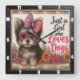 This playful wall clock features adorable puppies sporting stylish glasses, surrounded by colourful text and a vibrant background. Its cheerful design brings a touch of fun and whimsy to any room, making it a perfect decorative piece for dog lovers and those who appreciate unique and artistic timepieces.