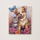 Introducing the "Puppy and Kitten, Butterfly and Flower" Game Puzzle! Step into a world of sweetness and wonder with this delightful puzzle. The puzzle features an enchanting scene of a playful puppy and a curious kitten surrounded by vibrant butterflies and blooming flowers.