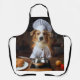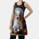 A dog dressed as a chef stands in a kitchen, with a skillet and various ingredients on the table in front of it. The scene is both humourous and charming, capturing the attention with its creativity.