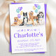 COPYRIGHT © 2020 Judy Burrows, Black Dog Art - All Rights Reserved. Puppy Dog Birthday Party Purple Girl Invitation