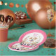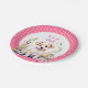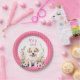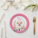 A sweet little puppy dog surrounded by pink flowers watercolor illustration baby shower paper plates.