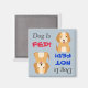 This is a cute refrigerator magnet that is handy for busy households, too! The text says "Dog is Fed! Dog is Not Fed!" in grey, red and blue, and with a cute little brown and white puppy dog cartoon image. The images and text are placed on a light blue grey background.