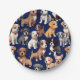 Puppy Dog Navy Blue Pattern Design Paper Plate