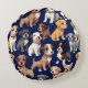 Puppy Dog Navy Blue Pattern Design Round Cushion