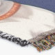 A quality printed throw has its advantages. This is a much finer weave throw than its loopier cousins, and though lighter, it is worth the investment for custom room accessorizing. The back is much prettier than the typical brown, and the fringe on the long sides very vivid, the selvage nicely done. Before photographing, I washed the throw in cold water, delicate, with a thicker woven throw the same size. On tumble dry low, this throw was dry in half the time as the other. This is a very practical quality if you use throws for furniture covers or to wrap up in frequently. The sleekness of the fabric makes it a great layer for accenting or protecting without the feeling of sitting on too much stuff. Perfect for napping or when you feel a light chill coming on. The color printing is beautiful and on this fabric, matched the design and color of my Photoshop image. This is an advantage for blending room fabrics and colors. The fringe on the short sides prints the colors from the design image and therefore varies from the side fringe. I streaked a white fractal line through the plaid pattern to give the illusion of weaving. This printed as crisp as an illusory thread, and put some white in the short side fringe, showing another advantage of print vs loomed- for artistic purposes, line lines, detail, and color integrity can be planned and preserved. My loomed throws have color limitations and more of a needlepoint texture. Print throws reproduce an exact image. The throw felt a little stiff straight out of the package, but this went away in the first delicate wash. Of course I searched the wash water for ink or bleeding and there was none.