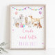 This adorable sign will be a great addition to your party. This design features cute puppy dogs with balloons, banners and faux gold foil confetti.
