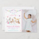 This adorable invitation features cute puppy dogs with balloons, banners and faux gold foil confetti.