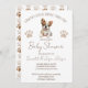 Puppy dog themed baby shower editable template invitation instant digital download gender neutral brown colours with a cute French Bulldog puppy baby shower invites for dog lovers