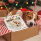 Puppy Dog's First Christmas is the perfect take on First Christmas! Cute, Modern yet Rustic Christmas Holiday Photo Square Ornaments featuring adorable little string of colourful Christmas lights in red, green, yellow, and purple, along with modern typography. Add 2 of your favourite photos for the perfect ornament! Please contact us at cedarandstring@gmail.com if you need assistance with the design or matching products.