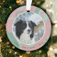 Puppy First Christmas Border Collie Dog Photo Ornament. Trendy white script on an abstract blush green and pink background. Custom photo in a round frame. Add your dog photo, name and year.