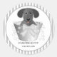 Cute puppy dog in a pail getting a bath. Grey Design Stickers are an excellent way to advertise your business on outgoing bills and mail. Add this cute sticker to all paid receipts. Your customer will have your business number close by.