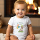 Adorable puppy with colourful balloons with a place to personalised with a name and age. Celebrate your child's first birthday with this cute baby bodysuit!