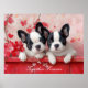 Celebrate the joy of love and companionship with "Puppy Love: Together Forever", a heartwarming artwork featuring two adorable Boston Terrier puppies peering over a charming red fence. With their paws hanging playfully and heads slightly cocked to one side, these cute pups exude an endearing charm that melts hearts. Surrounded by vibrant red flowers, they create a delightful scene against a soft pink background that radiates warmth and affection. The text, “Together Forever,” can be personalised to your liking (such as "John and Jane"), and adds a romantic touch, making this piece perfect for expressing love and friendship. This artwork is an ideal addition to any space that seeks to inspire joy and sweetness.