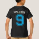 The t-shirt feels and looks great quality, a good thick cotton. It will be a little big for my son, but that means he will be able to wear it and not out grow it too soon. The print was as described on the order when personalised. True size, shape and colour T-shirt- thanks.