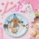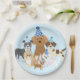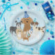 This adorable paper plate features puppies with birthday hats in blue for your little one's dog theme party.