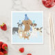 This adorable paper napkin features puppies with birthday hats in blue for your little one's dog theme party.