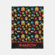 Needing a blanket for your new puppy then this paw and bone seamless design is the perfect one to chose with dog houses, ( Kennels) paws and bones in bright colours of red, blue, yellow and Green all on a black background. Personalise it for your perfect pooch with their name to make this an extra special blanket for them.