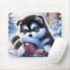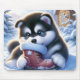Puppy Playing With a Snow-Covered Winter Boot Mouse Pad