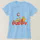 Puppy Plays T-shirts, tote bags, stickers, mugs, and more with an adorable puppy lying on his back dressed in a red shirt playing with a red and white beach ball!