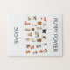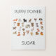 "Puppy Power" puzzle with fun dog breeds for kids with personalised puppy's name.