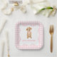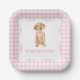 Preppy puppy golden retriever birthday with pink bow and pink plaid.