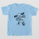 The t-shirt feels and looks great quality, a good thick cotton. It will be a little big for my son, but that means he will be able to wear it and not out grow it too soon. The print was as described on the order when personalised. True size, shape and colour T-shirt- thanks.