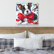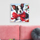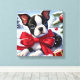Puppy with Red Bow in Snowy Christmas Scene Canvas Print