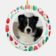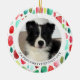 Celebrate your puppy's first Christmas with this 2 photo ornament featuring a pattern of hand painted red and green watercolor swatches. Customise the text. See the whole matching collection.