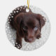 Customise this round Christmas ornament with a full-bleed photo of your pet and custom text on the back memorialising your puppy's first Christmas. Great as a gift for someone with a new puppy or as a fun keepsake for your own pup's first year. Change the fonts and background colour using the customise options.