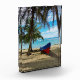 Pura Vida in Costa Rica. Boat on a tropical beach with coconut tree and the Caribbean sea in background, Puerto Viejo de Talamanca - Costa Rica