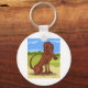 A pure bred irish setter dog sitting up nice and proud. This design looks really effective on these Keychain