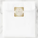 Classy ivory and taupe label with ornate 19th century French filagree design and maple leaf on a metallic gold gradient backdrop.