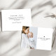 This simple, pure photo thank you card is ideal for anyone who wants to thank guests at their baby shower for the gifts, love, and support they have received, and to introduce their new member of the family. The modern, elegant design features a minimalist style, with a customisable photo placed on one side and classic, sleek typography for your information on the other half, accompanied by a sweet, tiny heart above. On the reverse, there is a customisable thank-you message with your names. Use the "customise" button to replace photos and edit text.